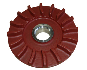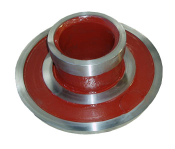 渣浆泵叶轮(胶)是橡胶渣浆泵的关键部件,在橡胶渣浆泵运行时,是将能量传给液体的具有叶片的旋转体,它是由若干弯曲叶片构成的。与前护套(胶)、后护套(胶)、前护板(胶)一样都属于渣浆泵橡胶过流部件。在橡胶渣浆泵运行时,前护套(胶)、后护套(胶)直接与浆体接触,形成半闭合式流道,使渣浆在此空间内运行。